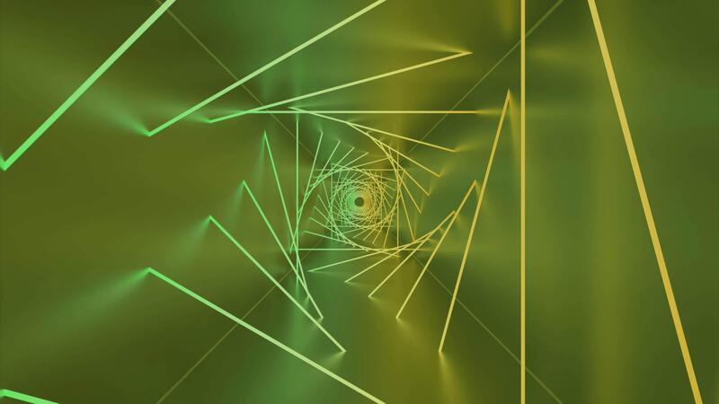 3D tunnel with lamps twisted in spirals. Design. Stylish tunnel with neon lines and reflection on walls. Structure of spiral of neon lines in square 3d tunnel Pro Video