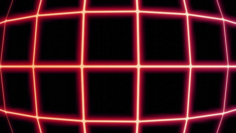 Abstract convex grid moving from right to left. Design. Gradient pink and red squares on a black background, seamless loop. Pro Video