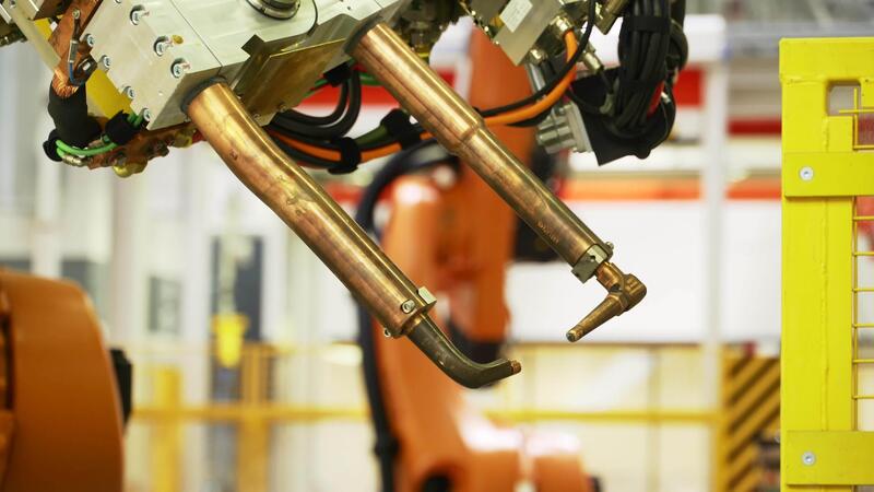 Latest technology in machine production. Scene. Robotic machines working in production of cars and parts. New technologies and robotization in production Pro Video