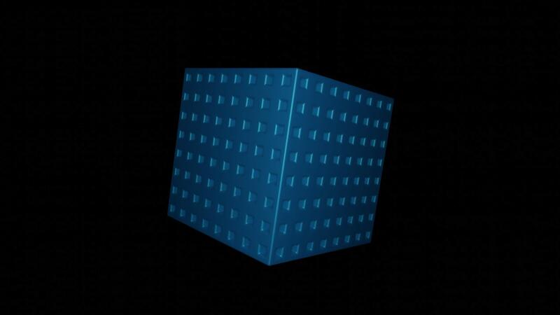 Black background. Design. A large square of blue color that revolves around itself in 3d format in abstraction. Pro Video