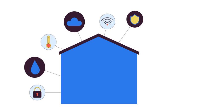 Smart home controls line 2D animation. Security, wifi network, thermostat, cloud technology 4K motion graphic. Automate connected devices linear animated cartoon flat concept, white background Pro Video