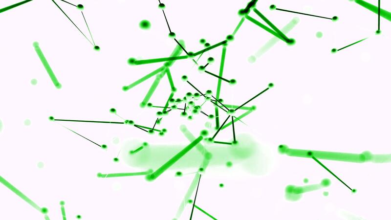 Colorful particles connected by lines flying flying towards camera. Design. Plexus dynamic background. Free Video