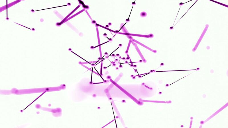 Colorful particles connected by lines flying flying towards camera. Design. Plexus dynamic background. Free Video