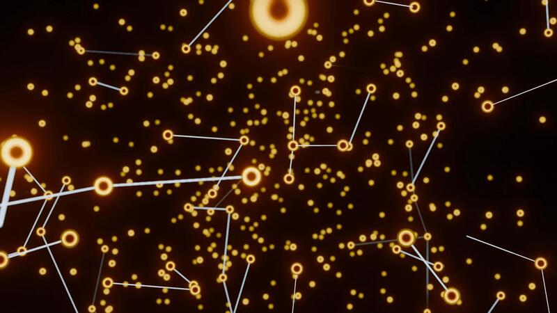 Moving structure of points, lines and triangles. Design. The camera flies inside the structure on a black background. Free Video