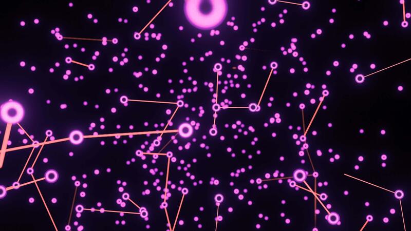 Plexus of abstract lines, triangles and dots. Design. Abstract endless digital world of purple color. Free Video