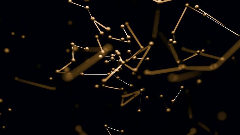Moving structure of points, lines and triangles. Design. The camera flies inside the structure on a black background. Free Video