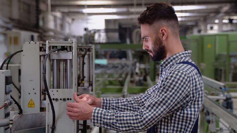 Smart factory worker using machine in factory workshop. Industry and engineering concept Pro Video