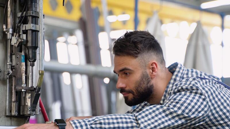 Smart factory worker using machine in factory workshop. Industry and engineering concept Pro Video