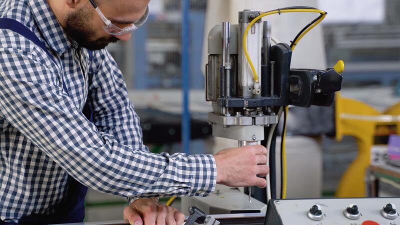 Smart factory worker using machine in factory workshop. Industry and engineering concept Pro Video