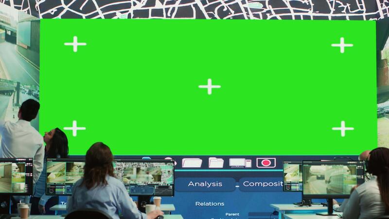 Indian supervisors gather intelligence on delivery trucks routes, look at an isolated mockup display in monitoring room. Diverse employees handling order tracking to avoid heavy traffic. Camera A. Pro Video