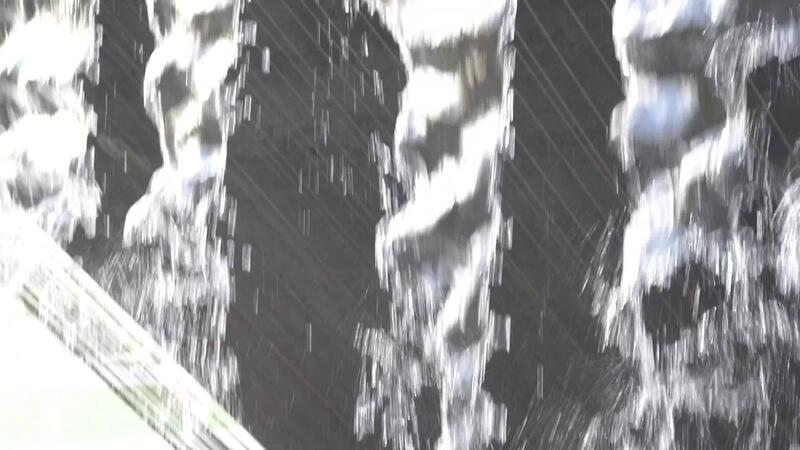 A waterfall is shown in a blurry image. The water is falling from a high place and is creating a misty effect. The image has a serene and calming mood, as the water is falling peacefully. Pro Video