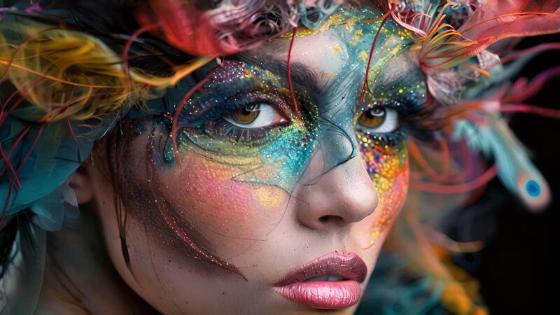 In this portrait the models face is transformed into a canvas of fantasy as the artist uses unconventional materials and techniques to create a whimsical and otherworldly makeup design. Pro Video
