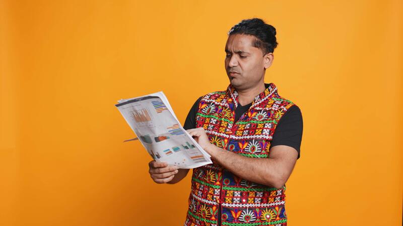 Irked manager browsing though financial audit report files, disappointed by work done by employees, studio background. Upset team leader throwing wrongly done paperwork in frustration, camera B Pro Video