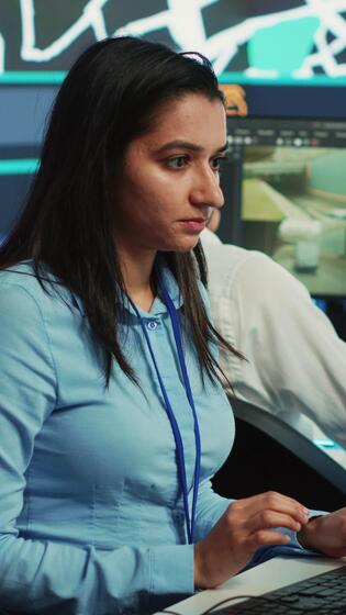 Vertical Indian employee collecting and transmitting information to couriers, locating the destination and sending the gps coordinates for faster order delivery. Dispatch call center operator. Camera A. Pro Video