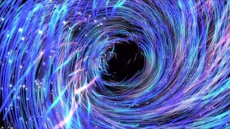 Flying the camera through a magical particle portal. Movement through a rotating tunnel of neon curves..mp4 Pro Video