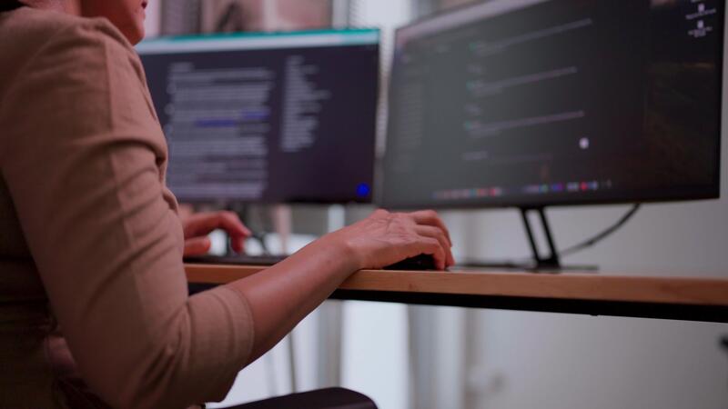 Asian woman working at home using IT chat ball system commands working on desktop computer Experts in creating innovative software Engineers are developing apps and motivational programs. Free Video
