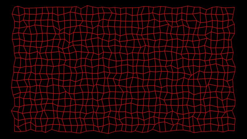 Yellow and red grid. Animation. A bright thin large grid on a black background that bends and sways slightly in abstraction. Pro Video