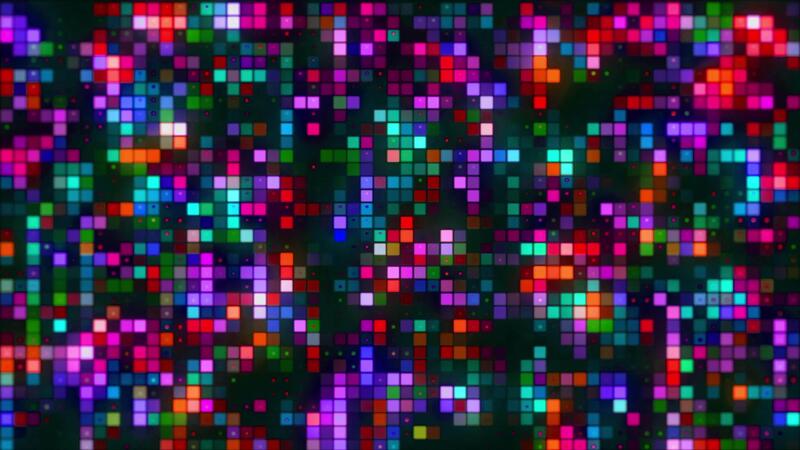 Abstract bright pixelated mosaic pattern. Motion. Abstract background with squares flowing and blinking, seamless loop. Pro Video