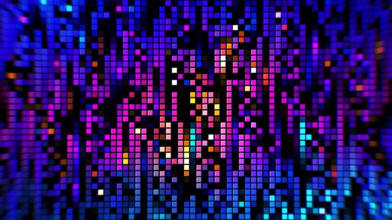 Abstract retro pixelated geometric background, seamless loop. Motion. Small flowing lines of squares imitating old fashioned games. Pro Video