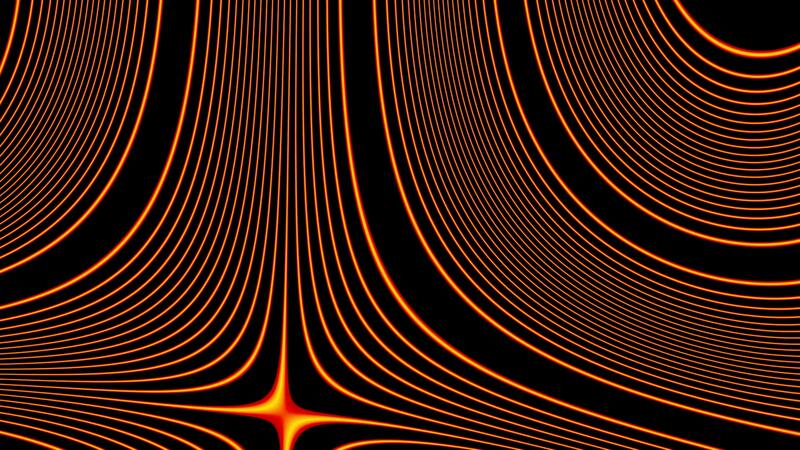 Curved lines are distorted in computer space. Design. Neon curved lines are distorted with effect of screen glitch. Linear glitch effect on screen of lines on black background Pro Video
