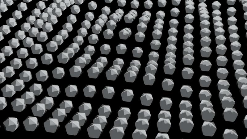 Background with moving silver 3D octahedron, seamless loop. Design. Simple figures field like pulsating rings on a black background, monochrome. Pro Video