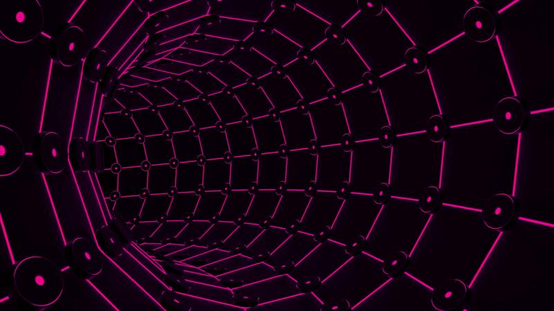 Moving space tunnel with grid. Design. Spaceship-style tunnel wraps up. Moving dark tunnel with nylon mesh spaceship Pro Video