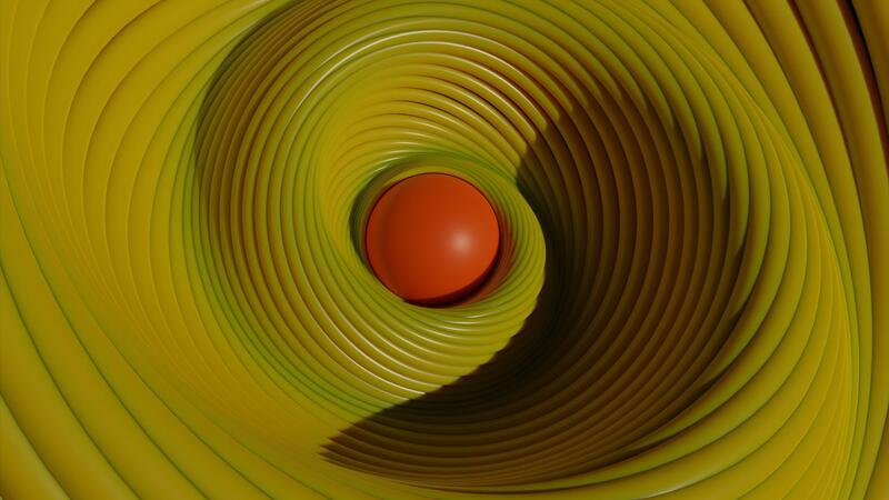 Abstract bright swirling background with a sphere in the middle. Design. Ball with spinning texture around it, seamless loop. Pro Video