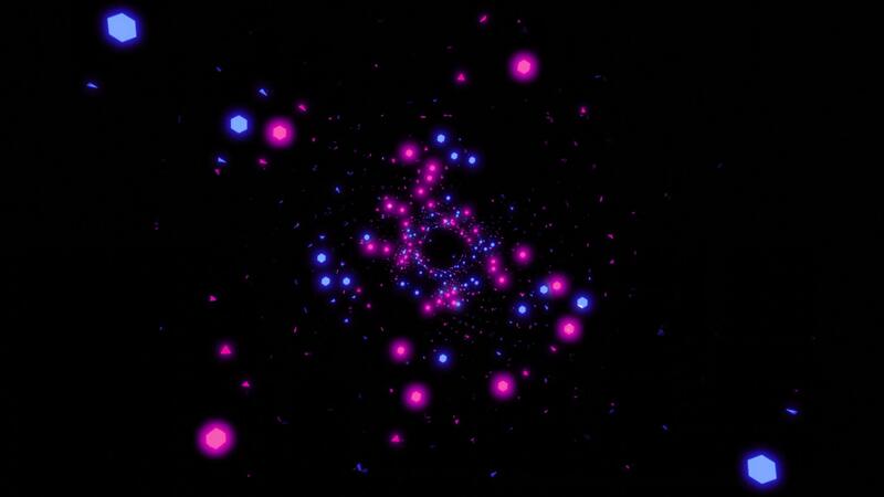Bright shiny particles fly in tunnel on black background. Design. Beautiful glowing particles hypnotize. Colorful shiny dots blink creating space tunnel Pro Video