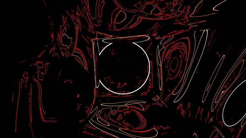 Black background. Design. Red and white lines in abstraction that create different neon patterns in 3d. Pro Video