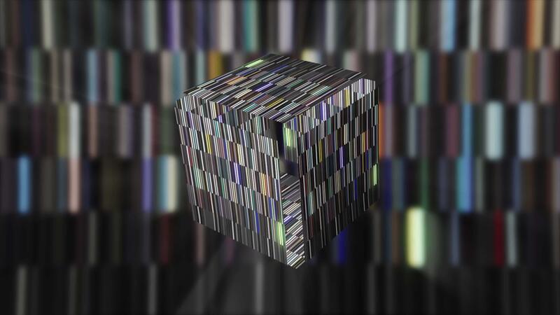 Glowing box opens in cyberspace. Motion. Futuristic empty cube opens on background shimmering striped backdrop. 3D cube opens in computer gaming space Pro Video