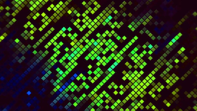 Animation background with the motion of glowing mosaic tiles, seamless loop. Design. Blinking squares with shine light, concept of party and dance floor. Pro Video