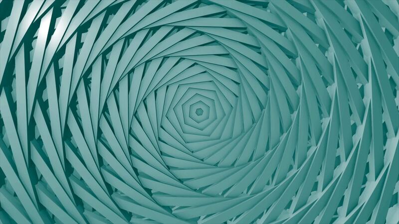 Hypnotic turning colorful spiral, seamless loop. Design. Spinning hexagonal objects creating effect of 3D layers made of plastic material. Pro Video