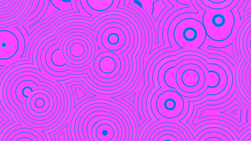 Pulsating pattern of circles and rings on colored background. Design. Flat rotating pattern with pulsating circles. Moving and changing circles pulsate on colored backdrop Pro Video