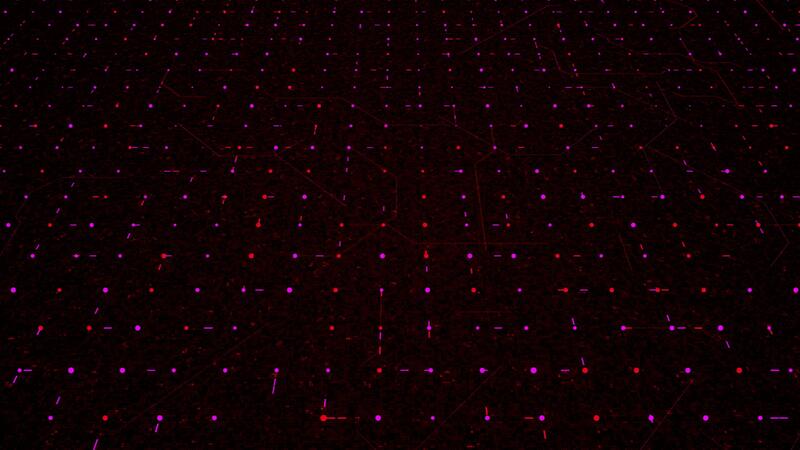 Abstract grid with narrow short lines moving randomly from dot to dot. Animation. Flowing digital surface divided into squares, seamless loop. Pro Video