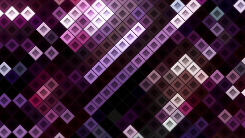 Pink and purple running cubic shaped figures on a black background, seamless loop. Motion. Abstract visualization of vintage computer game. Pro Video