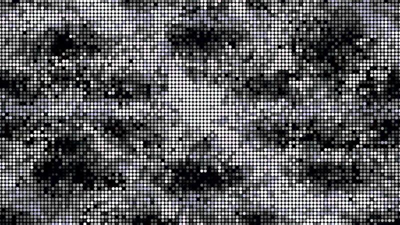 Monochrome pixelated background imitating digital waterfall, seamless loop. Design. Glowing pattern with blurred stripes and moving particles. Pro Video