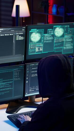 Vertical Cybercriminal coding, developing zero day exploit undetectable by antivirus software installed on systems, close up shot. Hooded developer building script able to trick firewalls, camera B Pro Video