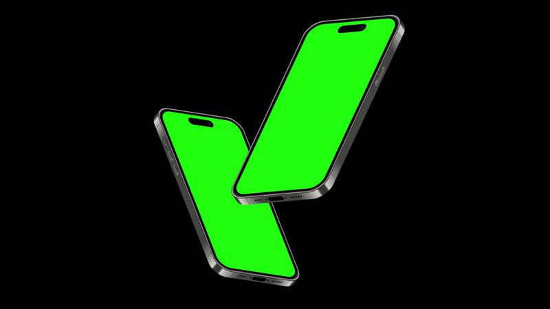 Smartphone animated mockup with green screen. Realistic smartphone mockup. Isometric smartphone animation. Smartphone device isometric technology. Transparent background with alpha channel Pro Video