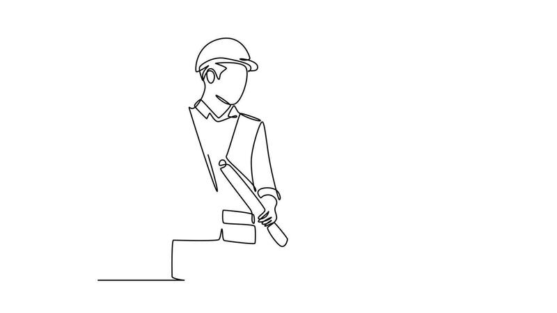 Animated self drawing of continuous line draw attractive young construction manager giving instruction to foreman coordinator. Building architecture business concept. Full length single line animation Pro Video