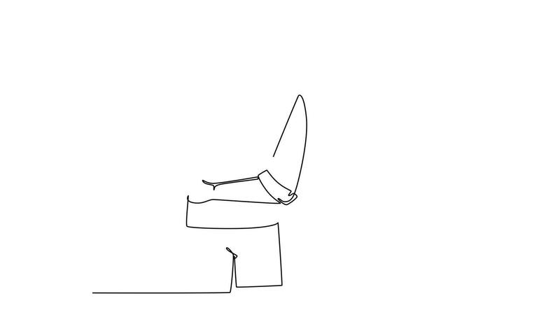 Self drawing animation of single line draw of young confused worker standing and thinking of solution to his job problem at the office. Think idea concept. Continuous line draw. Full length animated Pro Video