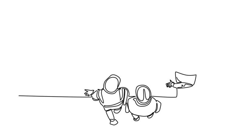 Animated self drawing of continuous line draw of young architect and construction builder discussing blueprint building design from top view. Home architecture concept. Full length one line animation Pro Video