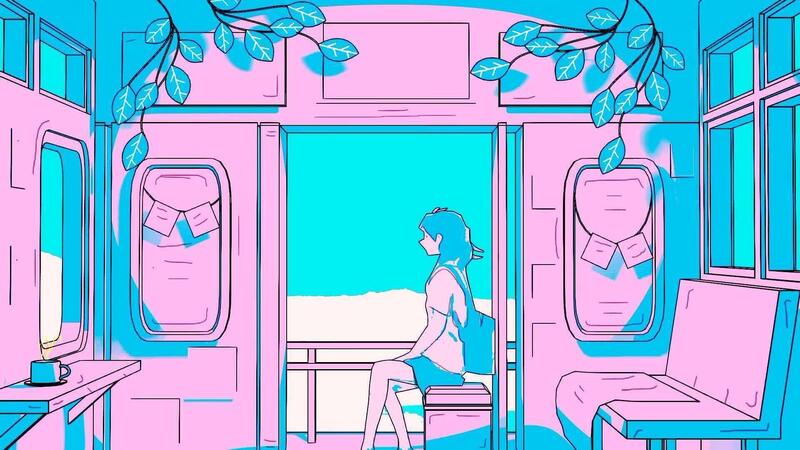 Lofi loop animation, journey of a girl sitting in a train carriage with an open window Free Video