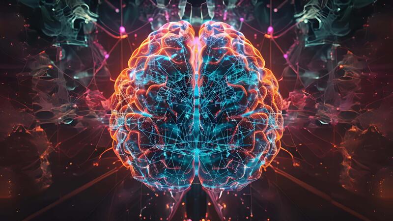 A geometricallyinspired image of a brain with intricate shapes and lines symbolizing the complex network of connections between active regions during problem solving. Pro Video