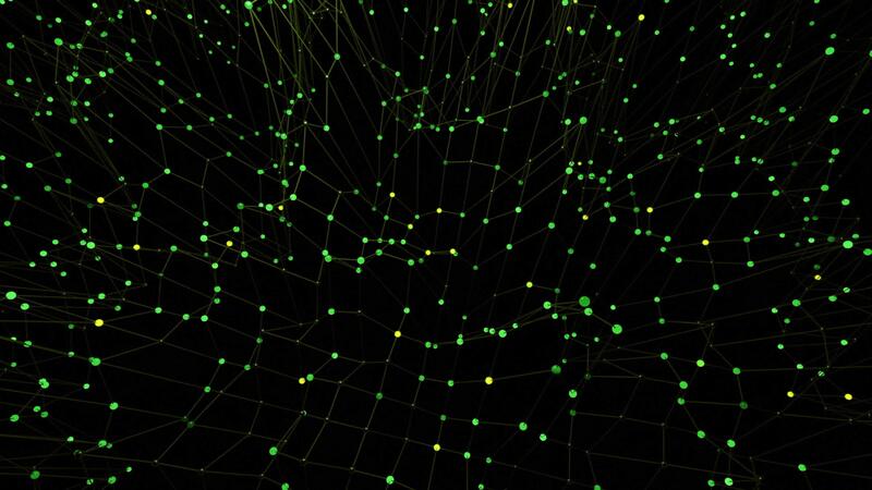 Green jumping tiny particles on a black background. Design. Small moving green dots, seamless loop. Pro Video