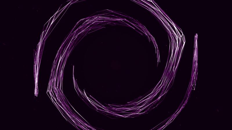 Purple abstraction composing a circle from a grid. Animation. A black background with a purple grid in the middle that makes up a geometric shape and rotates around itself. Pro Video