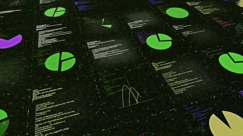 Schedules and programs. Amimation. A black background on which programs are written in bright colors and graphics are created in abstraction. Pro Video