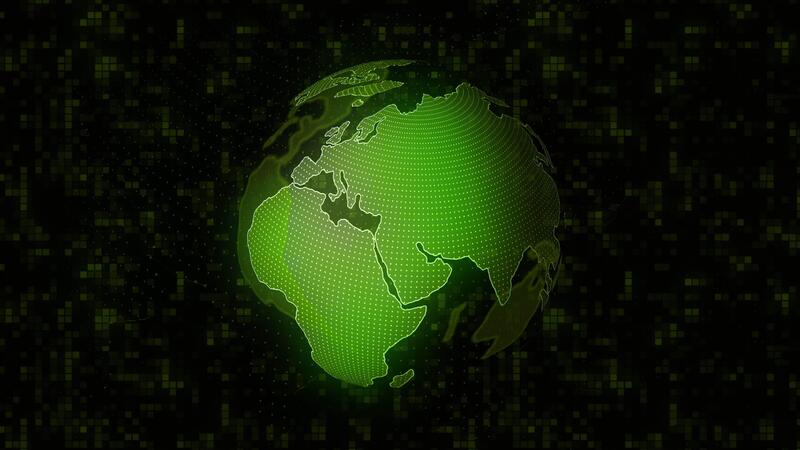 Black background. Motion. The hemisphere of our planet with highlighted features of red and green countries in abstraction. Pro Video