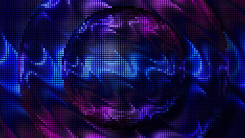 Abstract relaxing flowing liquid energy substance on the background of small particles and circles. Motion. A stream of luminous particles above static rings, seamless loop. Pro Video