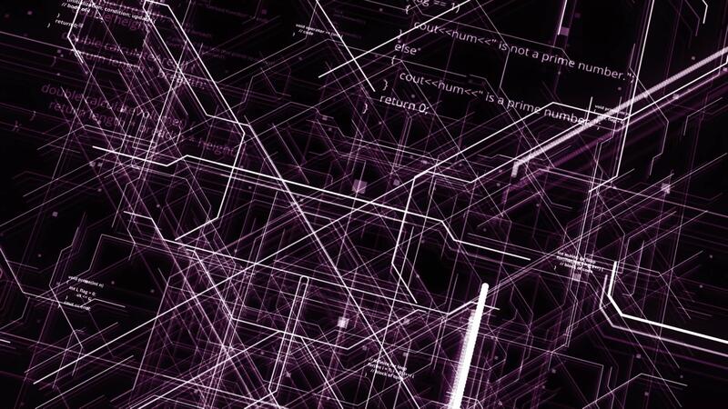 Abstract ultraviolet glowing tunnel with flying lines of code, seamless loop. Animation. Flying through digital technological corridor. Pro Video