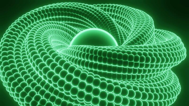 Abstract futuristic swirling neon spiral on a back background. Design. Twisted colorful figure transforming and rotating, seamless loop. Pro Video